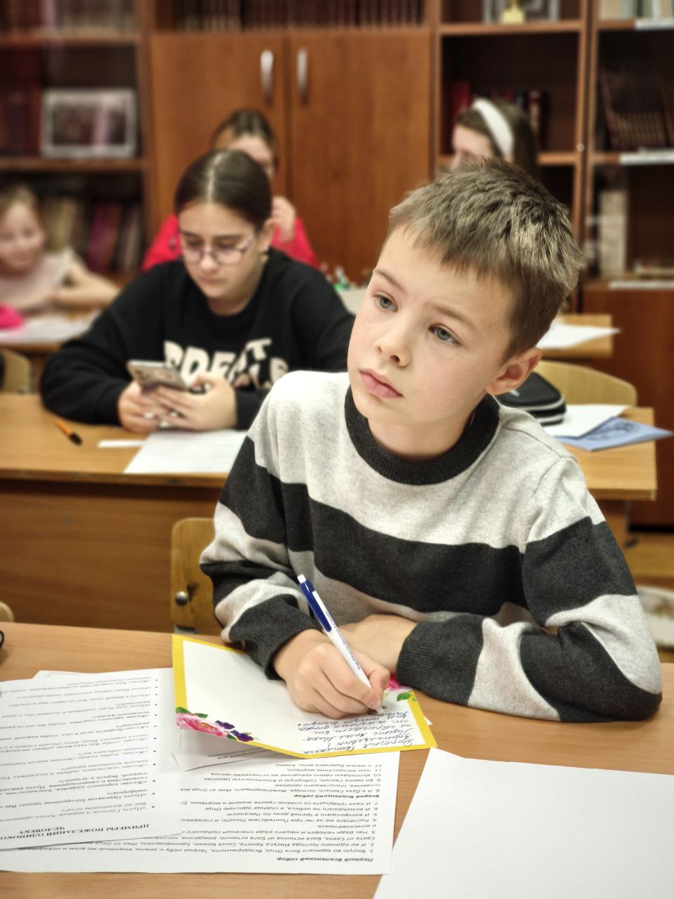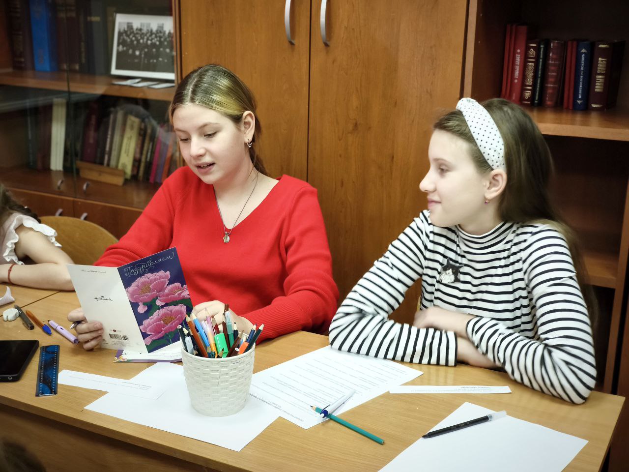 Сегодня ребята писали поздравления с днём рождения для одиноких стариков, проживающих в домах престарелых в разных регионах нашей страны.